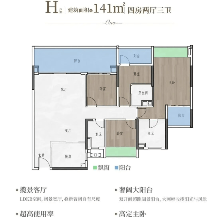 除周边成熟贸易外,142㎡户型实得面积141.5㎡。